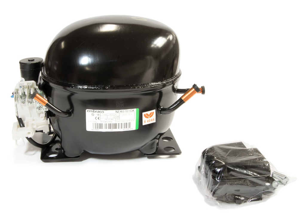New genuine Embraco Nidec compressor NEK6181GK for R404a MHBP 7.28cc applications.